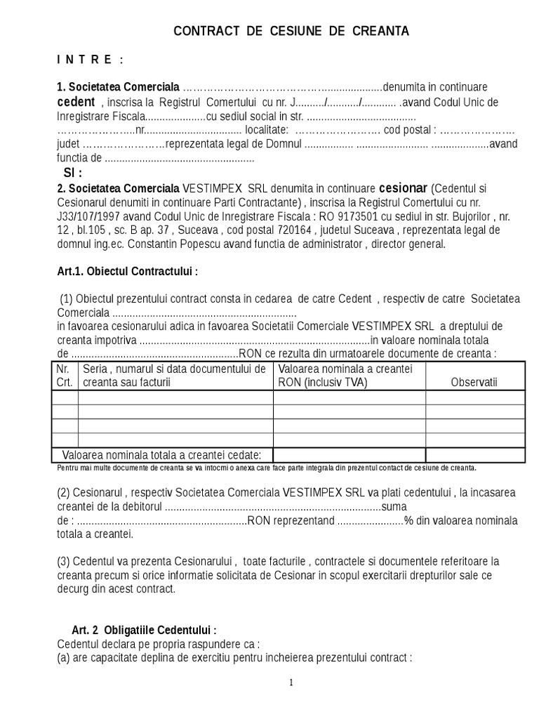 Model Contract De Cesiune